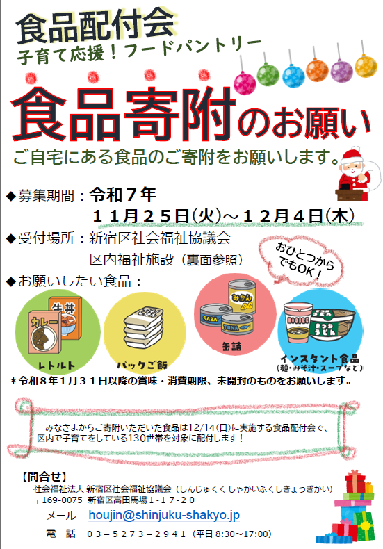 新宿区社会福祉協議会よりフードパントリーについてお知らせです。